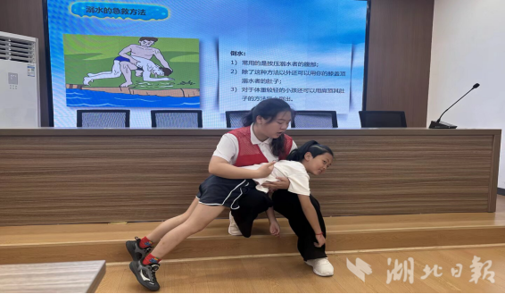 湖北日报客户端讯(通讯员李贤娇) 7月22日,完美网页版历史文化学院“禾下追梦”实践队深入黄石港区红旗桥社区暑期学堂,开展“暑期防溺水,安全不放假”特色课程,组织了孩子们观看防溺水动画片,让社区儿童了解到一些防溺水应对小妙招。