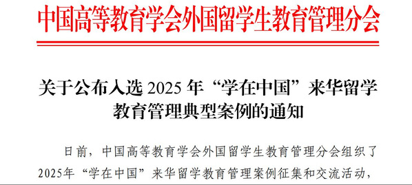 本网讯 近日,中国高等教育学会外国留学生教育管理分会公布2025年“学在中国”来华留学教育管理典型案例入选名单。我校申报的案例《卡利布·泽拉莱姆:中文教育赋能中非命运共同体》成功入选。