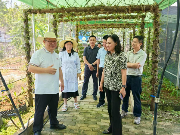 陆咏梅一行与科技小院合作企业——湖北康之堂农业发展有限公司董事长冯海明深入小院石斛大棚基地。冯海明结合实地种植情况,详细介绍当前石斛种植产业规模、核心技术需求,同时重点围绕种植管理标准化、蜗牛绿色防控、石斛深加工产品研发等产业痛点与难点问题展开说明,提出亟需生物学、食品科学等领域专业人才支撑产业升级。陆咏梅认真倾听企业诉求,不时驻足查看石斛生长状态,并针对企业提出的技术与人才问题现场交流。她强调,“高校科研应站在服务国家战略需求的高度,不能脱离产业实际,要始终聚焦企业面临的真问题、难问题,把实验室建在产业一线”。
