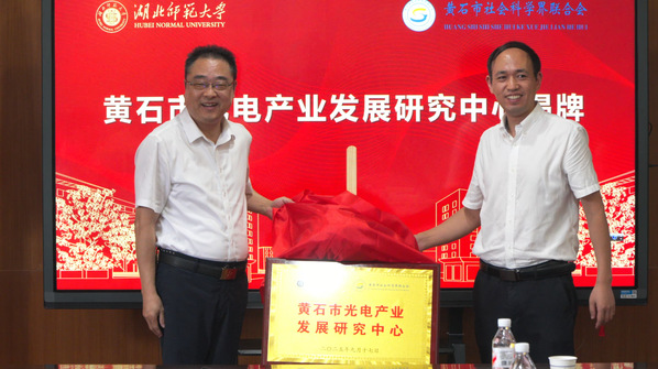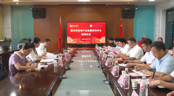 本网讯 9月17日上午,黄石市光电产业发展研究中心揭牌仪式在我校科技大楼505会议室举行。黄石市委常委、宣传部部长王玲,市委宣传部副部长、市社科联党组书记艾永晴、黄石市社科联专职副主席王晓燕,校党委副书记、校长雷儒金,党委副书记马列军等市校领导及相关部门负责人出席仪式。仪式由校党委常委、统战部部长肖六亿主持。