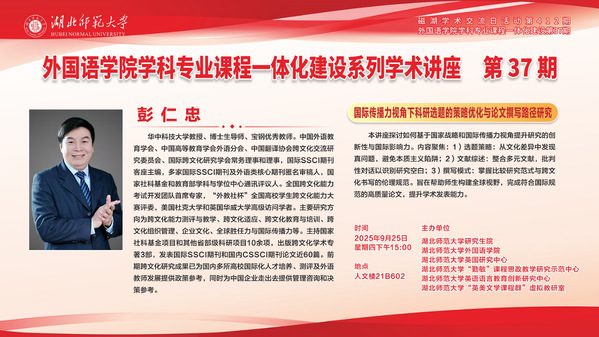 启动仪式后,彭仁忠教授以“国际传播力视角下科研选题的策略优化与论文撰写”为题授课,结合实例讲解选题策略与论文撰写要点,解答师生疑问。