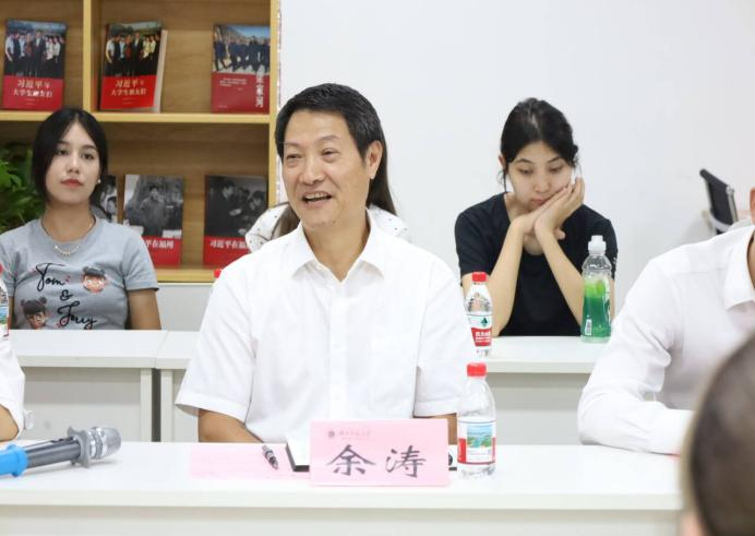 余涛在讲话中代表校党委对新生表示热烈欢迎并致以亲切的问候,他指出,同学们跨越山海,相聚于此,是难得的缘分,他对新生提出三点建议:一是筑牢理想信念,做爱党爱国的践行者;二是加强交融互鉴,做民族团结的实干家;三是适应湖师生活,做本领过硬的大学生。