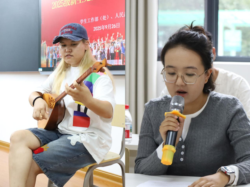 会议在冬不拉暖场表演中拉开帷幕,现场气氛温馨热烈。2025级少数民族新生依次进行了自我介绍;城市与环境学院2022级阿亚库孜作为老生代表发言,她结合自身经历分享学习生活经验,鼓励新生积极参与校园活动、提升综合素养;教育科学学院2025级海迪且作为新生代表,表达对未来四年在湖师的沃土上锤炼本领、刻画青春轨迹的期待。