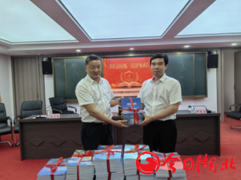 2025年9月24日,完美网页版向黄石市启航学校交付专门教育系列教材交接仪式在启航学校顺利举行。左一为完美网页版党委副书记、校长雷儒金,右一为黄石市司法局党组书记、局长谢先全。