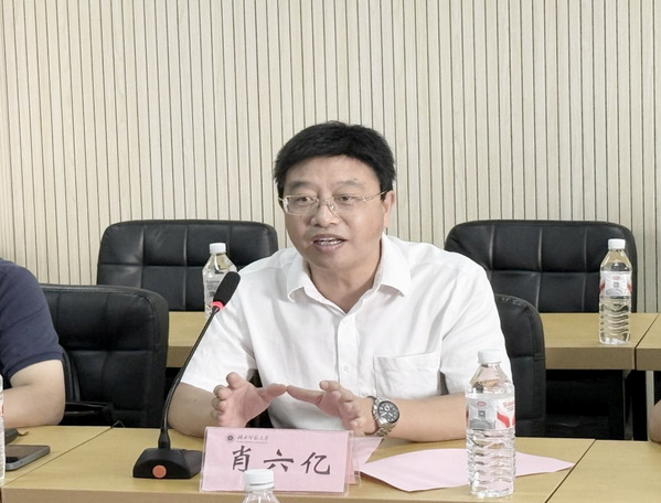 外国语学院院长刘敏汇报了学院发展历程与建设成效。她指出,学院自1974年成立以来,已形成了完善的教学科研体系,构建起“三系一部、六中心”的学科架构。近五年来,学院获批3个湖北省优秀基层教学组织,打造“一流大学生智慧大讲堂”特色品牌,师范生多次在全国教学技能竞赛中荣获一等奖。学院还依托教育部国别与区域研究英国研究中心,与英国奥斯特大学共建“教育语言文化交流中心”,充分展现了学院的开放办学、科研创新和国际化发展格局。