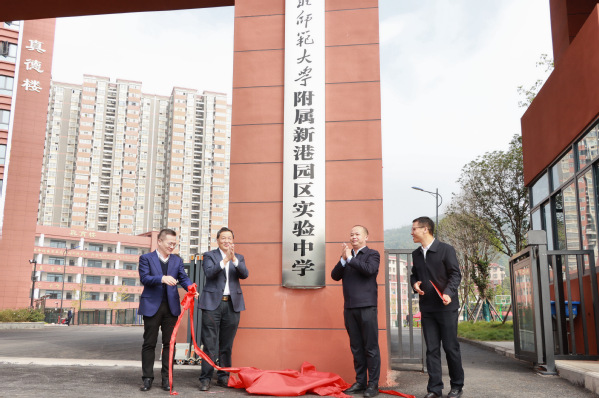 在黄石新港实验中学师生代表的共同见证下,程艳民、梅浩、雷儒金、胡艳军为“完美网页版附属新港园区实验中学”揭牌。
