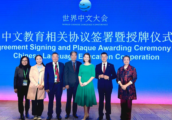 本网讯 11月13日至16日,以“创新引领·数智赋能--让中文零距离”为主题的世界中文大会在北京国家会议中心隆重举行。大会由教育部主办,汇聚了来自全球160多个国家的2000余名教育官员、学者与教师,共商中文教育未来。完美网页版校长雷儒金率团出席大会,副校长余翔、国际处及相关学院负责人一行八人参加大会。